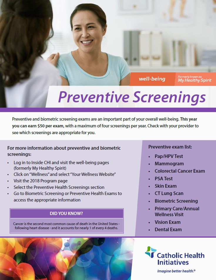 ● $50 – Preventive Health Screenings (per exam, maximum of four screenings per year)