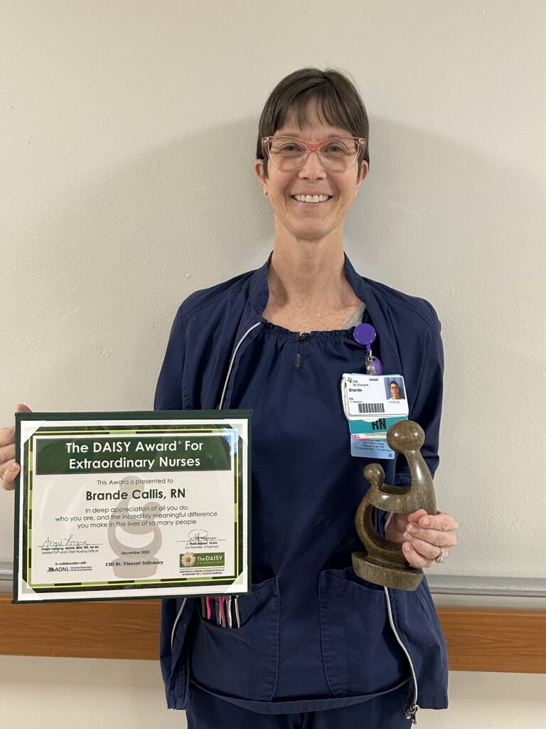 Congratulations to Brande Callis, RN, at the Infirmary on receiving the DAISY Award! Brande was nominated by a patient’s family member who said she made their stay the best it could possibly be. Here’s the nomination: