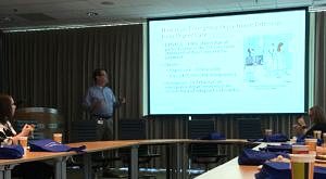 Dr. Corey Scott, an emergency medicine doctor at North, recently spoke to a group of about 25 employees from Newmark Moses Tucker Partners about the difference between ER and urgent care.
