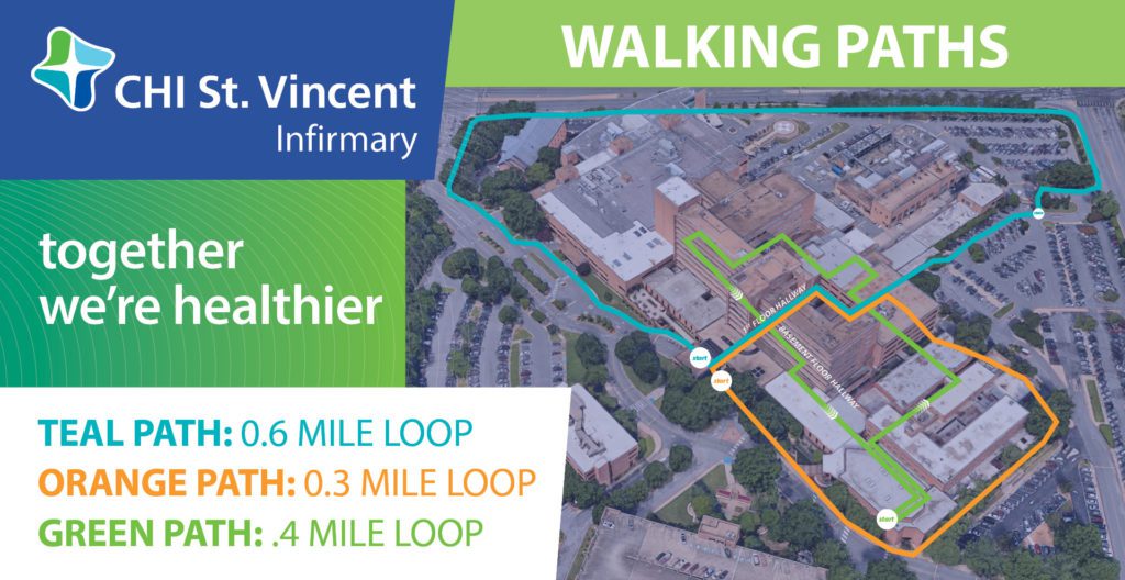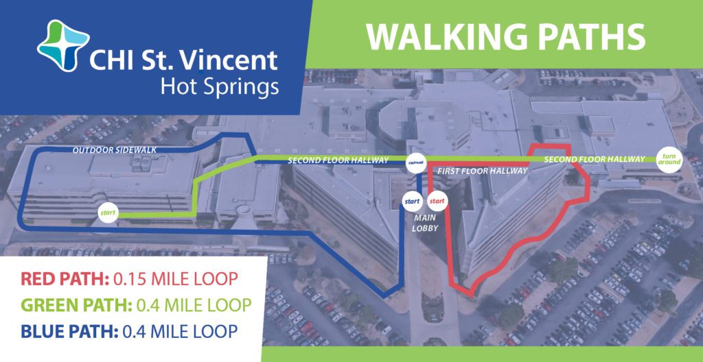 Enter to win a free pair of running shoes by taking a selfie with one of the hospital’s indoor or outdoor walking trails. Include in your selfie one of the trail dots or signs.