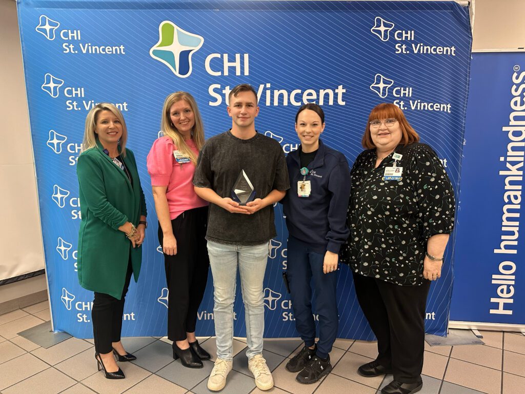 It’s not everyday that an American hero has praise for one of our coworkers, but that’s what happened for Riley Fields, a PCA at Hot Springs. Riley has received the CHI St. Vincent Service Hero Award after being recognized by a member of the Greatest Generation for his unwavering professionalism and calm, caring demeanor. Here’s his nomination: