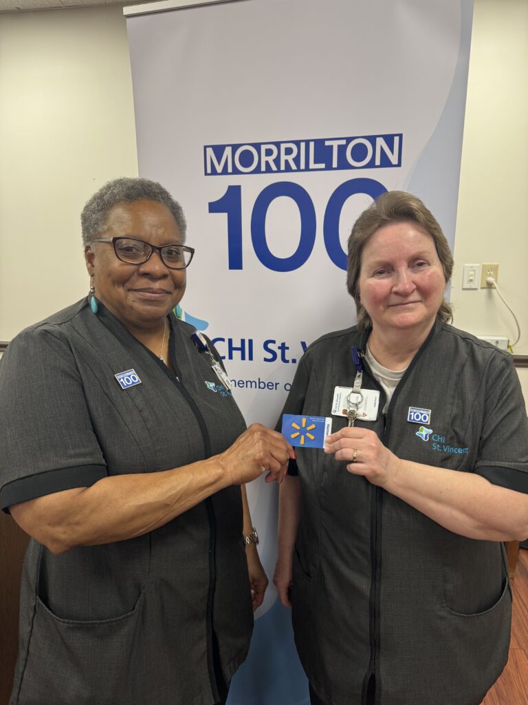 This week we held a number of events and giveaways for coworkers at Morrilton, including a special 100-year ceremony Wednesday that was attended by the mayor and county judge. We also unveiled the new timeline wall that details some of the important milestones that brought CHI St. Vincent Morrilton to where it is today. See below for photos and a video.