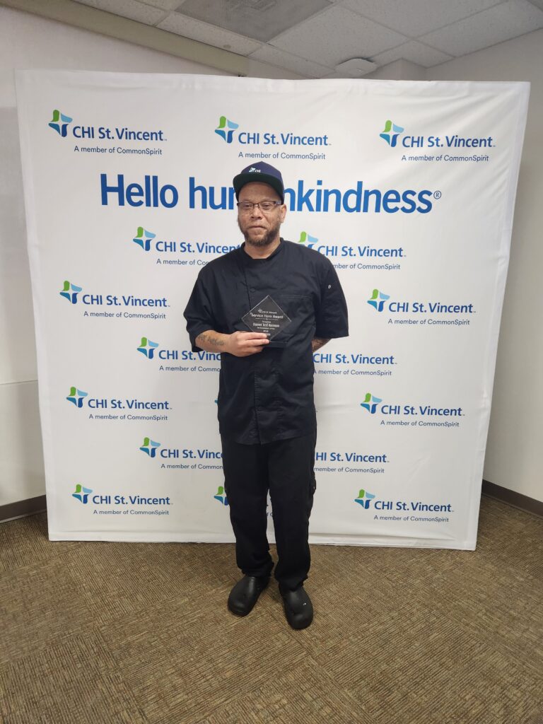 Congratulations to Darmel “Red” Bateman, Food and Nutrition Services at North, on being named a CHI St. Vincent Service Hero! Darmel has been nominated five times this year, and each nomination shows just how big of a heart for service Darmel has. Here are two nominations that show why he’s a deserving honoree: