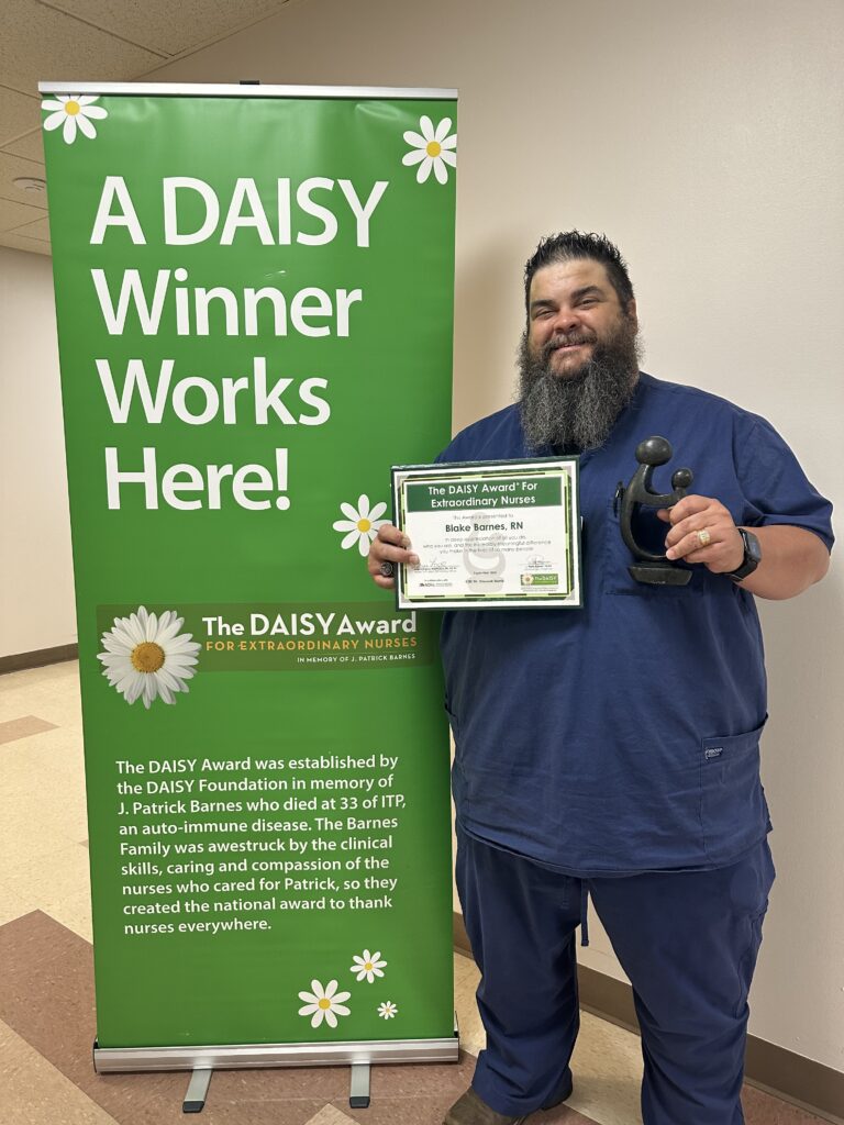 We are proud to announce that Blake Barnes, RN, at North has been honored with a DAISY Award! Blake was recognized for his outstanding work with a patient battling brain disease. Blake was so attentive and caring that the patient wouldn’t leave until they could submit a nomination for Blake. Here’s what they said: