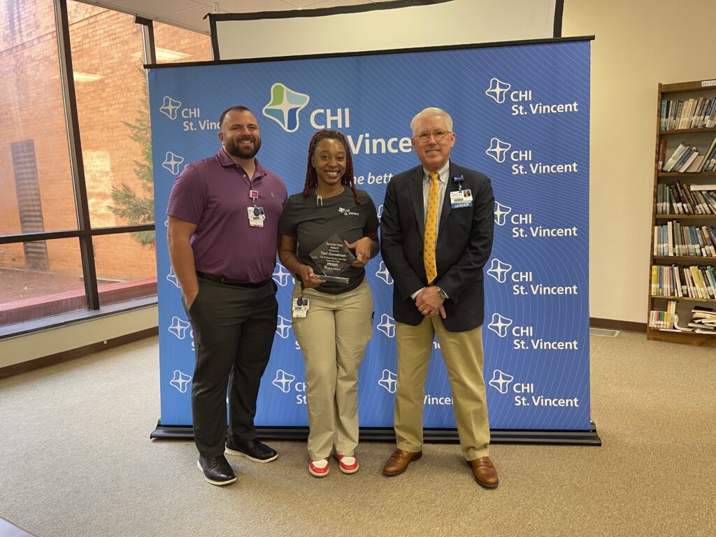 Congratulations are in order for Tori Goodman, patient transporter at the Infirmary, on being named a CHI St. Vincent Service Hero! Tori wasn’t nominated for just one instance. Instead, she was recognized for the extra steps she takes every time one of her patients needs to go to the Heart Station. Here’s her nomination: