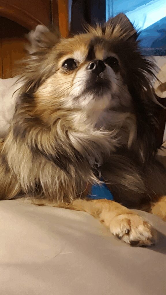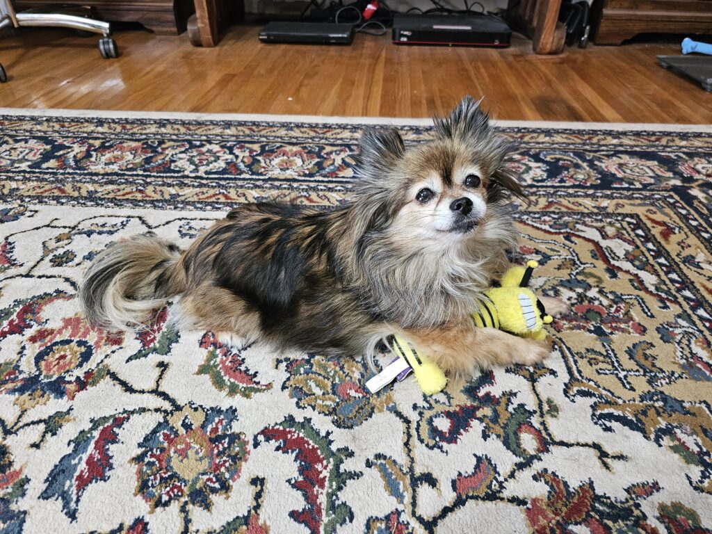 According to Melanie, Sara believes she is a human. She is very good at communicating her needs, including when she wants outside, when she wants to be fed, and when it’s bedtime (which means Sara gets the pillows at the head of the bed). Sara is always quick to run and greet Melanie when she arrives home and pulls out the big, sad eyes when Melanie has to leave. She is a smiling, gentle pup who loves attention and is happiest when her people are there.