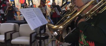 The Celebration Trombone Ensemble was the first to play Christmas Carols at Infirmary this year. Christmas Carolers are expected through the Christmas season. Traditionally school-age children from nearby Catholic schools sing in the lobby and in some cases to patients and co-workers on some units.
