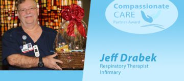 Respiratory Therapist Jeff Drabek is the winner of the March 2016 Compassionate Care Partner Award at CHI St. Vincent. This quarterly award recognizes a deserving recipient from an ancillary department who demonstrates these qualities: goes above and beyond their normal duties, inspires others in a positive manner, is an excellent team player, takes care of the entire… View Full Post